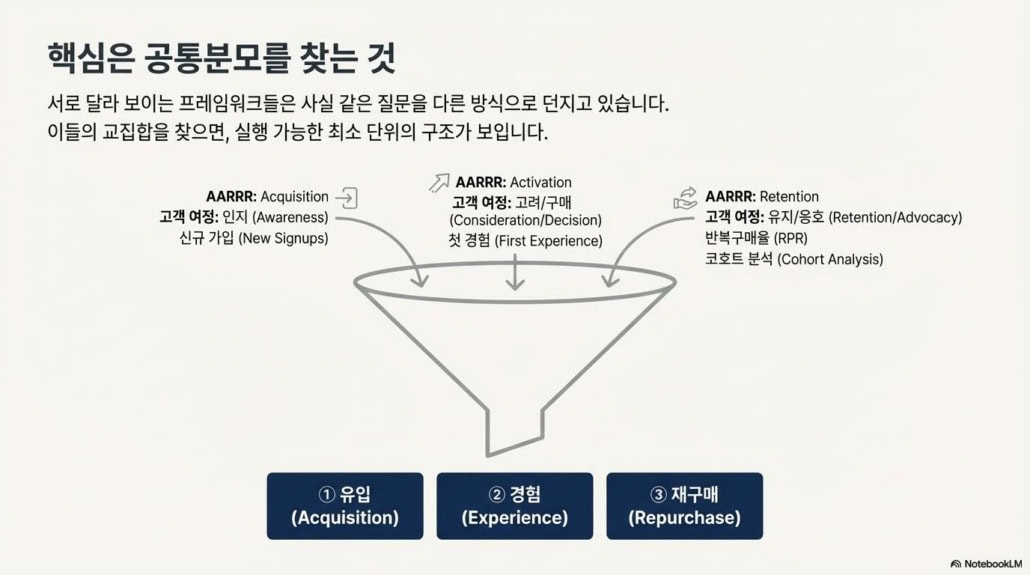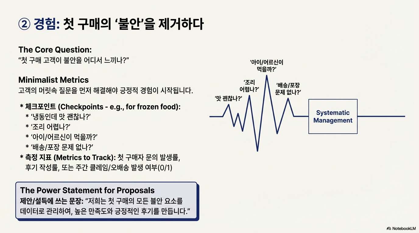 2단계는 경험 단계(Experience Layer)다. 고객이 실제로 브랜드를 ‘겪는’ 과정이다. 제품을 구매하고, 포장을 열고, 향과 질감과 온도를 느끼는 바로 그 순간. 이 경험이 감동적일수록 고객은 브랜드를 기억한다. 그래서 포장, 메시지, 응대, 속도 — 모든 접점이 중요하다. AI를 통한 고객 피드백 정리나 리뷰 분석은 이 경험을 개선하는 가장 실질적인 도구다. 경험이 쌓이면 신뢰가 만들어지고, 신뢰는 다시 다음 유입을 끌어온다.