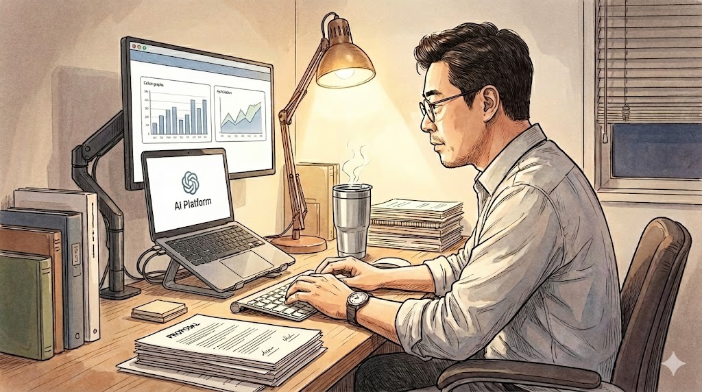 그런데 정말 흥미로운 건 그 다음이었다. 머릿속에서 사업의 구조를 재정리하자, 실제 세상도 따라 정리되기 시작했다. 시설의 동선이 단순해졌고, 불필요한 재고가 줄었고, 인력의 역할이 명확해졌다. 마치 생각의 회로가 현실의 시스템으로 연결되는 느낌이었다. 요즘 자주 하는 말이지만, 이건 정말 ‘AI 덕분’이었다. 혼자라면 수개월 걸릴 일이었다. 각 분야의 AI부장님들이 — 기획, 디자인, 리서치, 카피, 분석 — 각자의 자리에서 의견을 주고받으며 제안서의 완성도를 끌어올렸다. AI는 단순한 도구가 아니라 사고의 촉매제였다. 내가 미처 보지 못한 논리의 틈을 메워주고, 흩어진 생각을 구조로 만들어줬다.