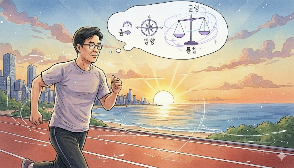 결국 중요한 건 균형이었다. 가까운 곳과 먼 곳을 동시에 보는 일, 내 속도와 목표를 함께 조율하는 일. 빠르게 나아가려는 욕망(속도)과 올바른 방향을 찾으려는 이성(방향), 그 두 긴장이 만나 만들어내는 것이 바로 균형이었다. 속도와 방향, 어느 쪽이 더 중요하냐고 묻는다면? 고민될 때는 둘 다. 그 둘의 줄다리기 속에서 결국 균형이라는 감각이 태어난다. 인생이든 운동이든, 결국 그건 다르지 않다.